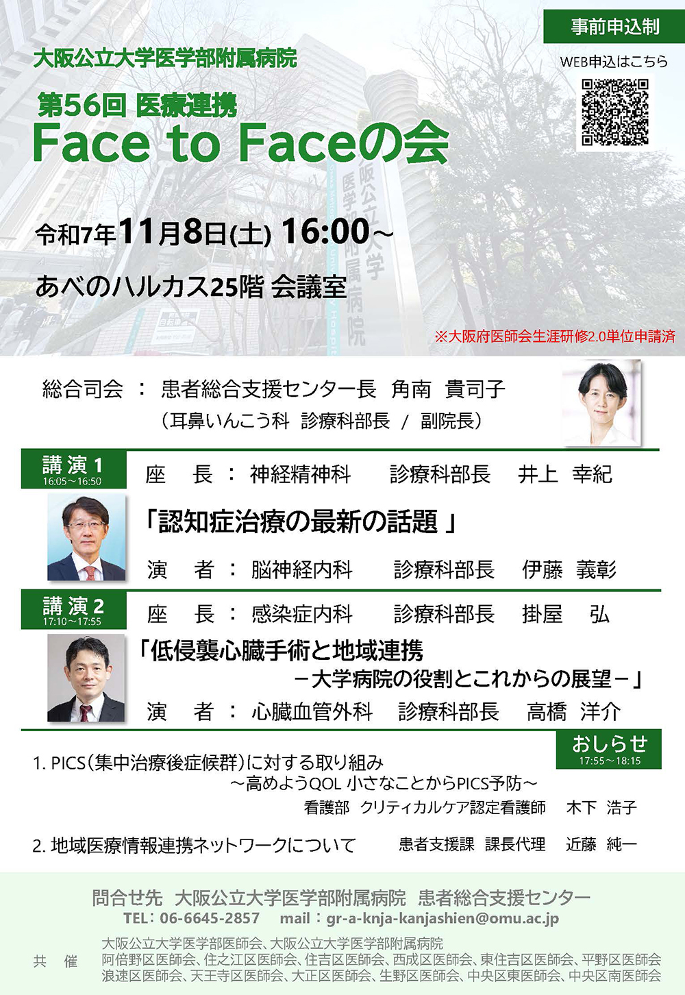 事務局 患者支援課(飯古・星野) 06-6645-2857