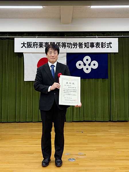 中村薬剤部長が大阪府薬事関係等功労者知事表彰で表彰されました。