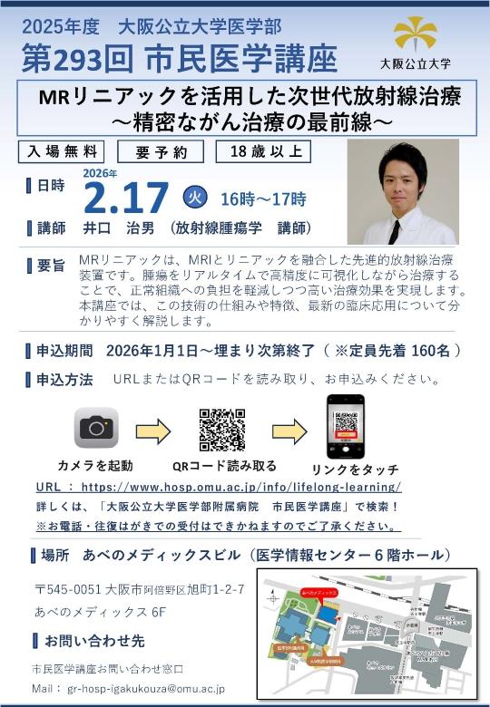 第293回 市民医学講座 『MRリニアックを活用した次世代放射線治療 ~精密ながん治療の最前線~』