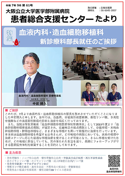 また、病病連携に関しては、病院機能を分担できるネットワークを充実していきます。そのためには情報交換が重要と考え、公立大病院における医療連携『Face to Faceの会』や当センターのホームページを通じて、本病院からの情報発信や本院で行っている先進医療の現状などを、「顔の見える」形でお伝えしたいと考えております。