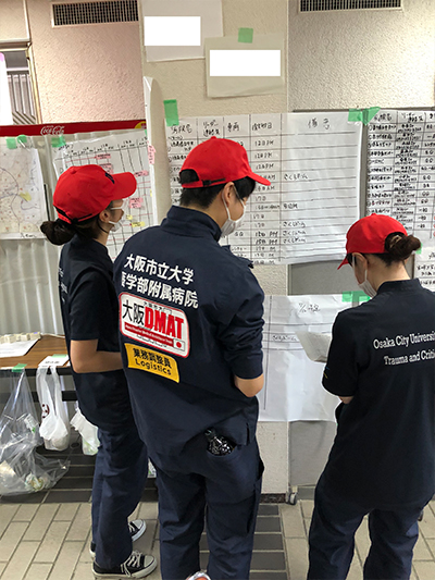 山本救命救急センター病院教授がチーム管理統括を担い、当院のDMAT隊はチーム管理部門の業務に当たりました。支援が必要な医療機関、避難所、指揮所など被災地に派遣するチームを行政等と調整して派遣し、全国から集まったDMAT隊の動きを管理しました。また、一部の隊員は現地の医療機関での活動も行いました。