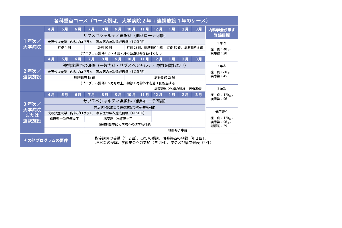 このように、われわれ大阪公立大学医学部内科系診療科としては、将来の内科医を志望される先生方に、専門性を高める研修だけではなく、多様化するニーズに添えるような研修プログラムを検討・提供できるものと自負しています。